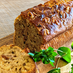 - クッキングシートを敷いたパウンド型に3の生地を流し入れ、残りのくるみを生地の上に散らす。